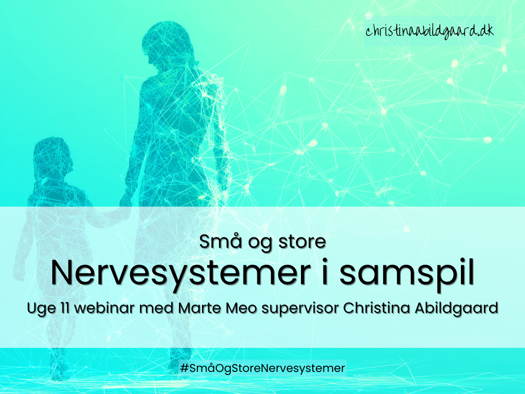 Marte Meo supervisor og nervesystemterapeut Christina Abildgaard introducerer, hvordan små og store nervesystemer påvirker hinanden i samspillet mellem børn og voksne, med afsæt i Marte Meo.